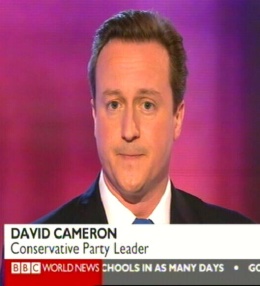 Selles suhtes oli praegune peaminister ja tööpartei (vasakpoolsed) esinumber Gordon Brown palju eristavam. Ma panin isegi tähele, et näiteks BBC ei pannud uudiste lõigus tema kaadritele nime alla. Kas peetakse teda üldtuntuks või siis pole võimalik teda teistega segamini ajada kuid igatahes Clegg ja Cameron olid nimega varustatud.